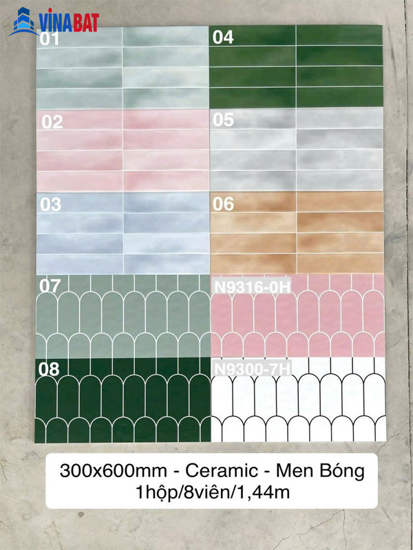 Bộ sưu tập các mẫu gạch giả thẻ 30x60cm loang bóng 1108