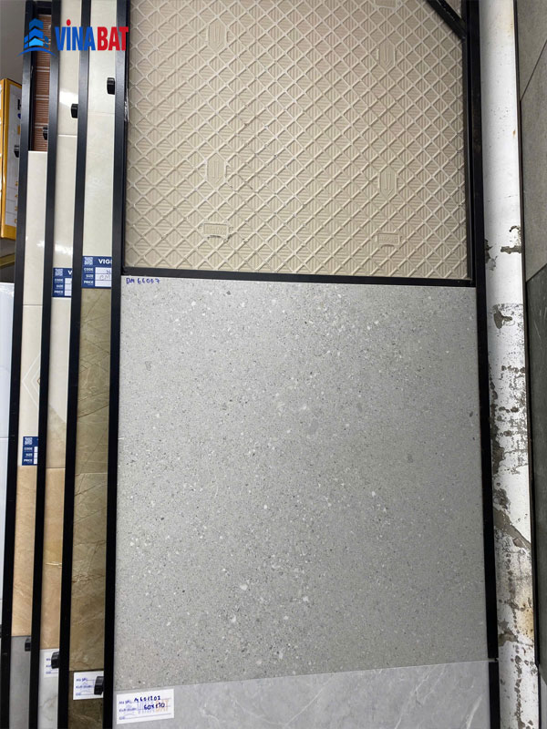 - Kích thước chuẩn 60×60, dễ thi công, các mạch gạch đều đẹp, mang đến không gian hài hòa và đồng nhất.