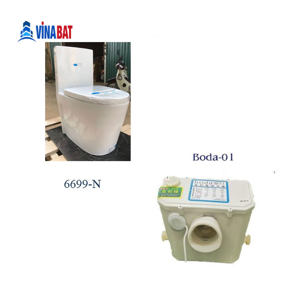 Máy xử lý chất thải bồn cầu thoát ngang BODA BD-1 kết hợp bồn cầu thoát ngang Kamanda 6699-N